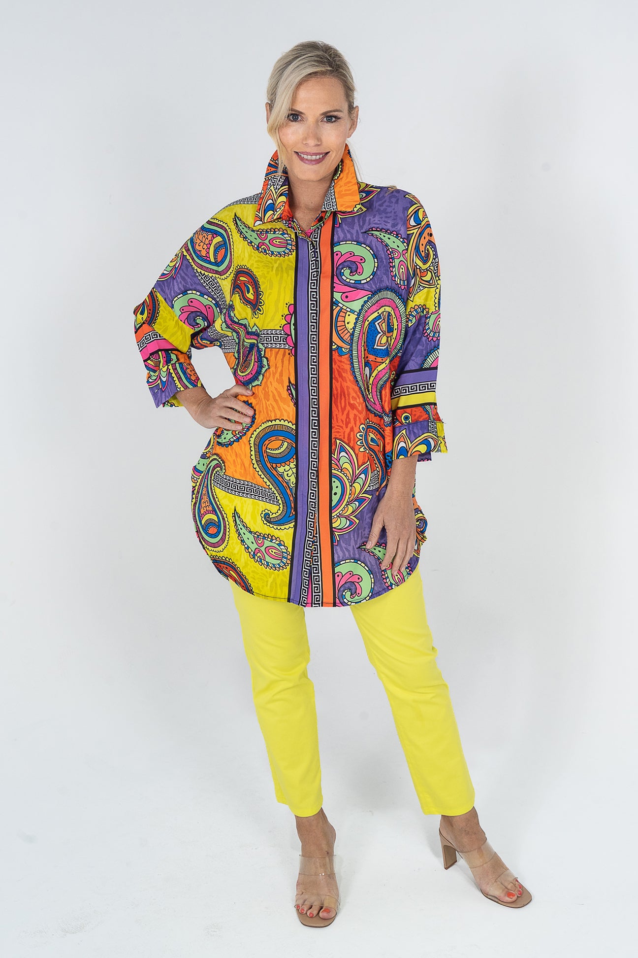 Make a statement in this super fun dress. Send happy vibes to the world. Half length sleeve. Crystal Embellishments.